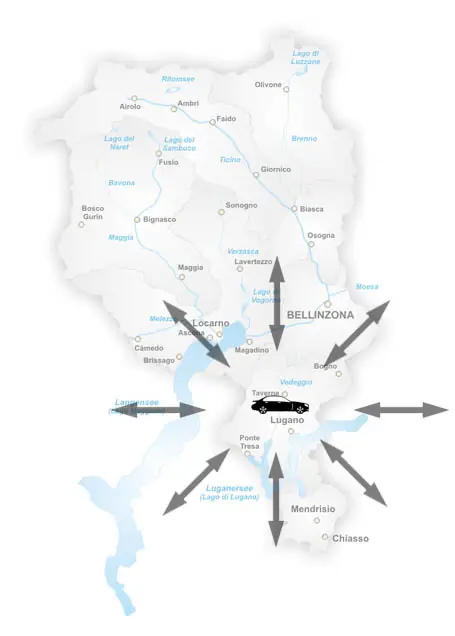 - Collegamenti Ottimali con le Zone di Confine Italiane: Viaggi senza stress tra il Basso Ticino e le vicine località italiane di Como e Varese, Milano ecc. Offriamo trasferimenti comodi e puntuali (andata e ritorno).